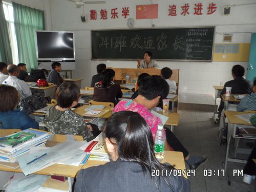 今天下午二点半,高二级部成功召开学生家长会。在会上,首先由教务科副科长文新岳发言,说明学业水平测试的重要性,希望家长重视,积极配合学校鼓励学生努力学习,在明年的学业水平测试中取得优异的成绩。随后,级部长杨铁军从四个方面向家长汇报了高二年级的整体情况。接着由各班班主任主持,在教室与家长就学生近段时间的表现进行了沟通。