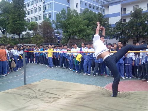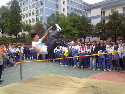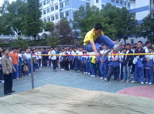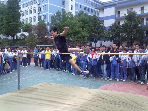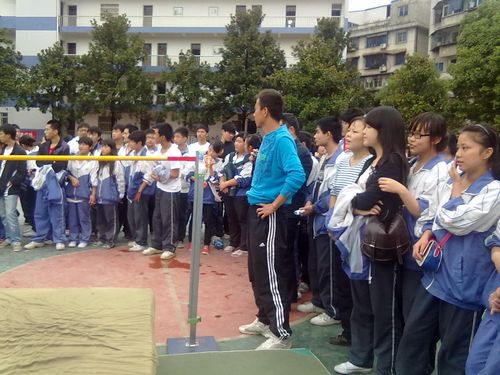 今天下午两点,在田径场上进行了男子跳高比赛,观看比赛同学很多,大家都悬着一颗心在为运动员喊加油。我们来看看跳高比赛的精彩瞬间。