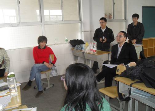 上午10点,四位领导抵达株洲市第十八中学,并拜访了学校相关领导。之后,在指导老师的带领下来到了实习生的备课室,带来了学校对实习生的亲切慰问,并询问了实习生在衣食住行等方面的情况。随后,实习队队长向学院领导进行了汇报,详细地介绍了实习队各项任务的完成情况。学院领导听完汇报后,对实习生实习工作开展的表示了肯定,并希望实习生在接下来的半个多月里,能再接再厉,争取实现教学技能进一步提高、实习生活更加丰富多彩,并表示学校愿尽最大努力为实习生解决各种难题,以保障实习的顺利进行。接下来,各位领导又深入课堂,对实习生的教学工作进行具体考核。课后,对实习生的讲课进行了详细点评,就实习生在教育教学中存在的问题进行了指导。