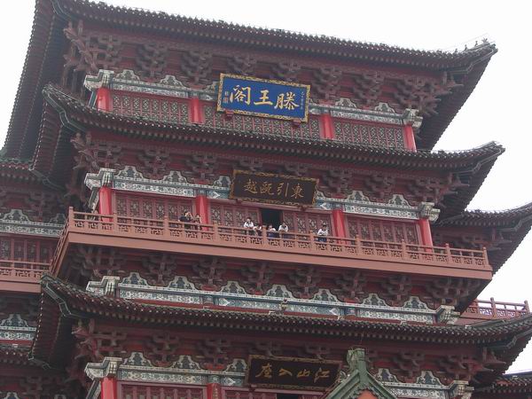 参观完革命圣地后,我们来到了滕王阁下。滕王阁因唐太宗李世民之弟-李元婴始建而得名,因初唐诗人王勃诗句“落霞与孤鹜齐飞,秋水共长天一色”而流芳后世。主体建筑为宋式仿木结构,碧瓦丹柱,雕梁飞檐,气势颇为雄伟。同学们被震撼着,在阁内瞻仰驻足。