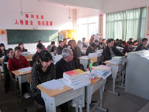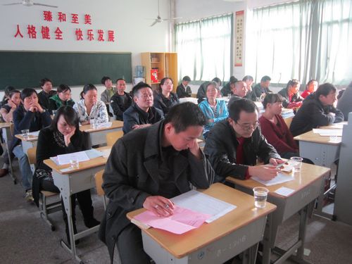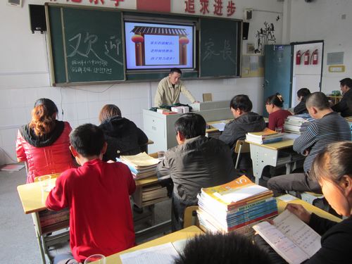 十一月十九日下午,我校召开各年级家长会。目的主要是与家长相互交流学生表现情况,树立共同培养学生的目标,为学生发展沟通协调。本次家长会分三个阶段进行:第一阶段由学生科主持,部份家长参加,在多媒体教室进行家长学校培训,并有心理剧表演。第二阶段在各班教室举行,全部家长参加,由班主任组织家长阅读材料,并收听学生科饶科长“如何做好学生家长”的广播讲话,有学生代表致辞--《学生感恩,健全人格》。第三阶段由班主任主持,向家长汇报了学生的期中考试成绩,学习状况,请家长阅读《学生给家长的一封信》,家长给学生回信并提出建议。下图为高二家长会上部份图片: