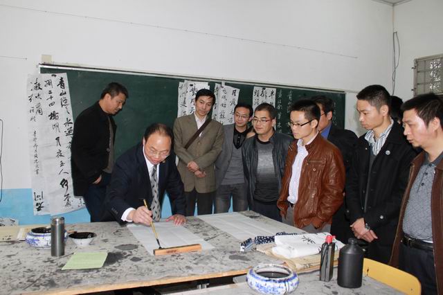 六. 学校的模块室建设很有特色,十八中的美术氛围很浓,特别是美术展厅是一流的,并表示想在株洲搞一次个人书法展,就设在十八中展厅。