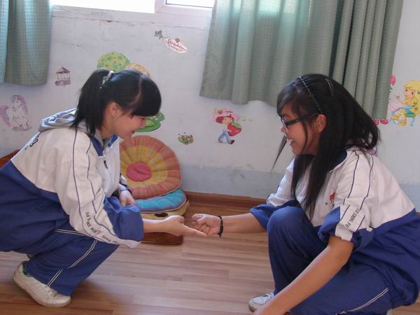接着心理老师带领大家学习了人际沟通的一个重要技巧—赞美。“赞美的感觉像春天”,赞美的妙处,赞美的技巧,同学们听得很认真。“了解只是前提”,更重要的是要学会运用。在培训现场,刘老师请2对同学来做示范,请他们互相赞美,然后请现场的同学一一指出他们的赞美的优点与不足。经过示范,同学们对赞美的技巧已经熟稔于心了。在一对一实践环节,每位使者都认真地观察着对方的闪光点,真诚的赞美着对方,一时间心理活动室笑意浓浓,春意盎然。