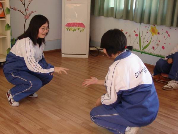 心理老师首先带领大家体验了《成长三部曲》的热身游戏,又名《小鸡变凤凰》。每个参与者最开始都是鸡蛋,蹲在地上,然后找搭档“锤子剪刀布”决胜负,胜者升一级,输者降一级。游戏很简单,但是好玩有趣,而且寓意挺深。在分享环节,同学们总结到“人要不断的去尝试,失败了没关系,总会有成功的时候”,“要主动”。