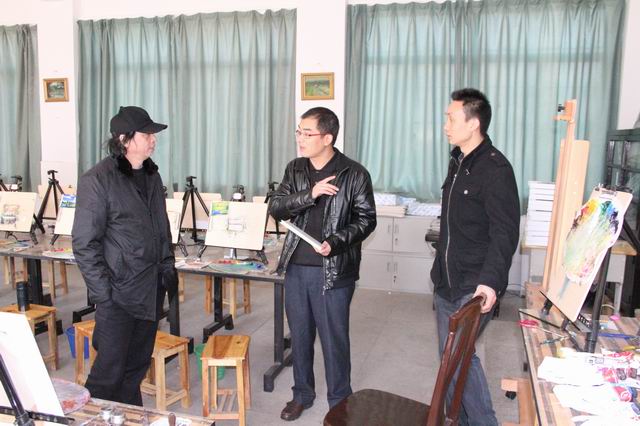 李志华副校长向曲湘建教授介绍油画模块教学情况
