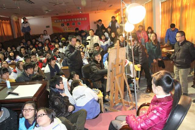 在为期两天的指导中先后对我校的美术模块教学、高考培训给予肯定和具体指导,对我校油画模块课高度评价:走在了湖南省中学美术教学前列,首屈一指。曲湘建教授还对我校师生进行专业培训,当场示范素描半身带手,为高三美术专业生模拟考试阅卷、试卷讲评,并对所有美术生开展美术讲座。