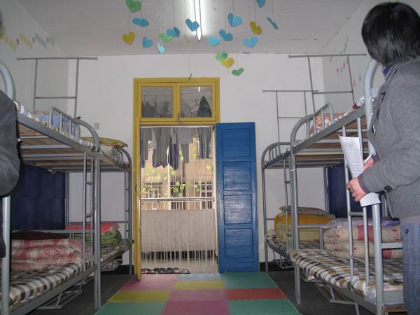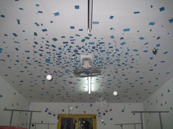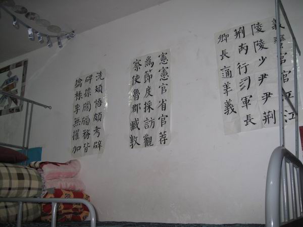 一片片、一张张彩色小纸片承载着孩子们的梦,落在墙上,有星星、月亮、太阳、大海、鱼以及憨态可掬的卡通人物、还有那些不知名的,却有无限魅力的符号图案。一幅幅字体流畅、均匀健美的书法,或浓墨重彩或清新婉约的绘画悬挂于内,每一幅都使整个宿舍充满了深邃、厚重的美。