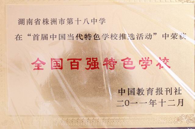 特大喜报:株洲市第十八中学荣获“全国百强特色学校”