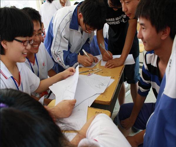 活动中总有学生灿烂的笑容,图为现场心理测验:学生为主体