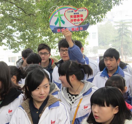 今天是植树节,学校“特色植树节,我的树文化”植树节活动举行挂牌仪式。本次活动内容由四个部分组成:认领一棵树木、设计一块树牌、举行一次仪式和写好一篇文章。中午一点,244班全体同学在班主任任珍珍老师的带领下来到班级认领的樟树下,举行挂牌仪式。