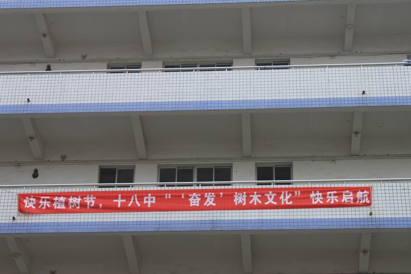 株洲市十八中在植树节快乐起航,3月12日,十八中给植树节注入新的文化内涵和意义。2012年十八中倾力打造校园文化,上升文化品位,对教师和学生进行文化陶冶熏陶,实现学校“提质提量,增色增蕴”的目标。此次校园文化之“树木” 文化,主题是:“我奋发,我成长”。主题寓意是:学生与树一样茁壮、稳健、睿智、顽强的奋发生长。