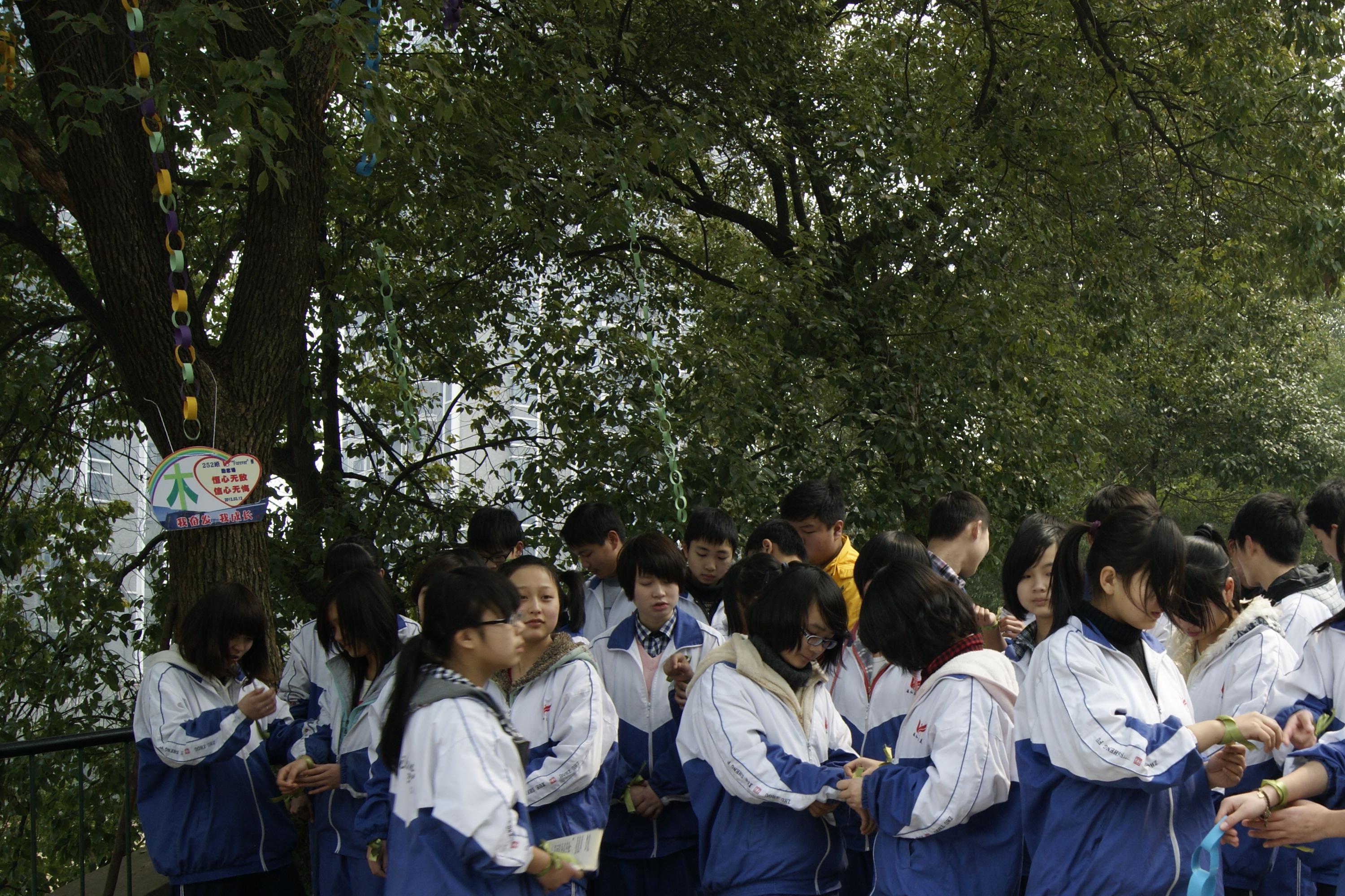 2012年3月12日下午1点左右,踏着初春的阳光,252班在本班的班树前举行了一场隆重的树牌挂牌仪式,活动还邀请了高一级部长李老师一同参加。