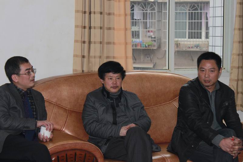 省教研员朱小林(右)布置工作。市教研员张庆斌(中) 市美术教育学会理事长李志华(左)