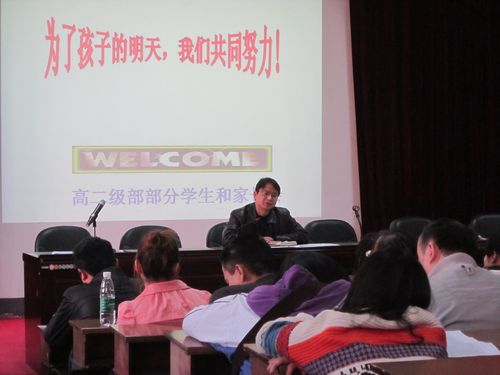 今天下午三点,高二级部在多媒体教室召开部份家长会议。与会的人员是在第二次月考中仍有五科及以上科目不及格的学生家长及学生本人,相应班主任,教务科文科长等。