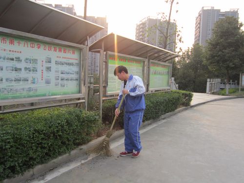 早上七点,进入校园,一路走来,学生们都已经在自己的岗位上。学生春风满面、天空阳光明媚,美丽的校园,有我们的维护,才更显风姿!