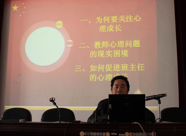 罗志强老师还特别分享了东北师范大学教育科学学院博士生导师,华东师大心理学博士后刘晓明教授主讲的《关注班主任的心理成长》。通常关于如何做一个好班主任的指导很多,而关于班主任心理成长的少。罗老师现场还给全体班主任做了《紧张压力自我诊断》的测试,不少班主任笑着惊呼都有,都有,看来压力还真不少!此外,罗老师还分享了新学到的一些自我心理调适的方法,如将“应该”变成“希望”,摇摆自己的身体,班主任们可以实践操作,调适身心。