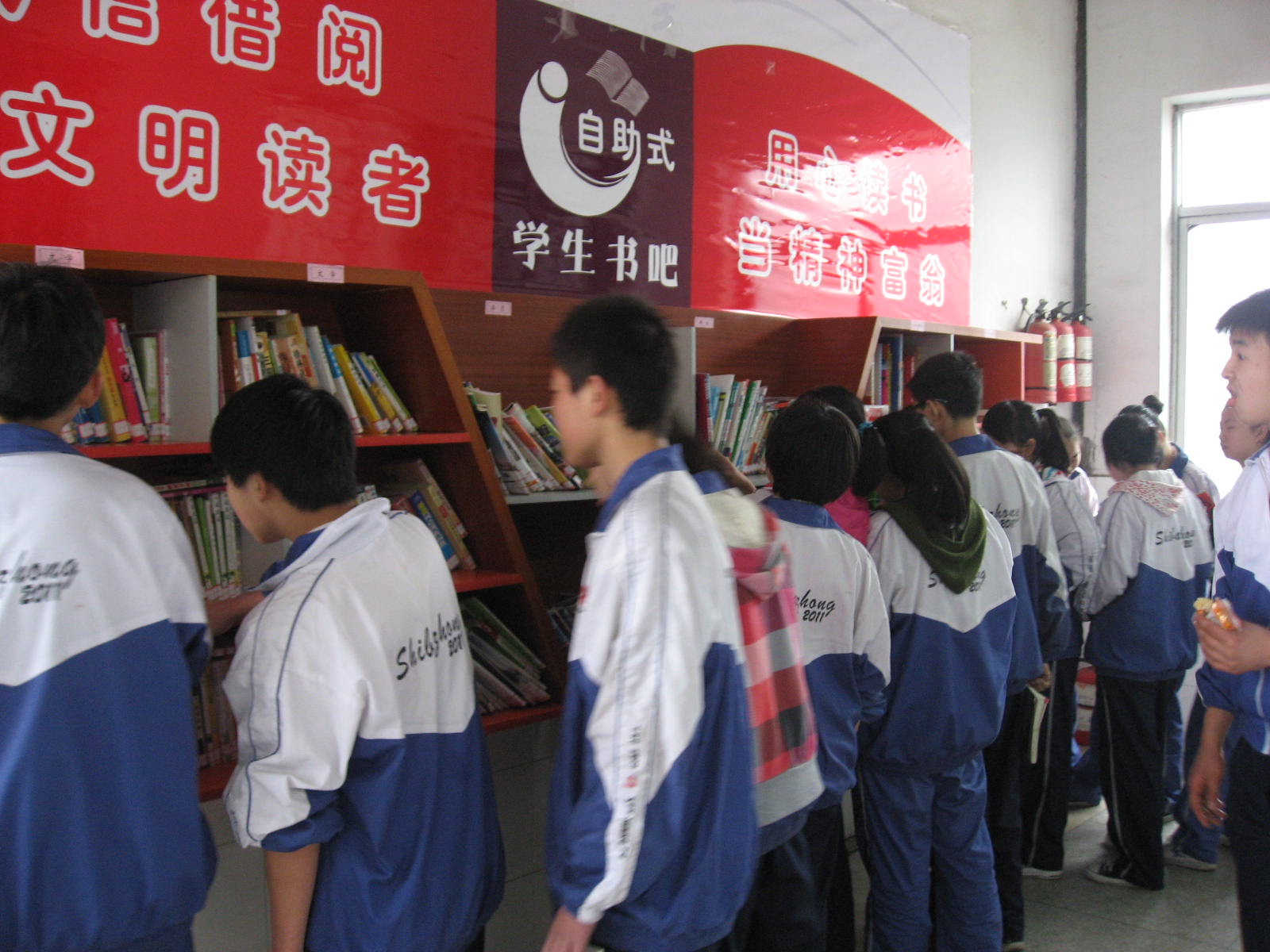 最近在株洲市十八中高一级部出现了读书的高潮,以往在空闲时间里学生不是玩手机就是追追打打,而现在学生一有空闲就往这里跑,来享受美好的阅读时光,是什么有如此大的魔力呢,原来在学校党委的指导下,由校团委和高一党支部联合在高一级部的六楼建立了“自助式学生书吧”,这里书籍的类别五花八门,内容丰富多彩,借还自由方便,深深的吸引着学生。据悉,此次开放的是书吧高一部分,书吧试使用一段时间后,学校将建立书吧高二、高三部分。