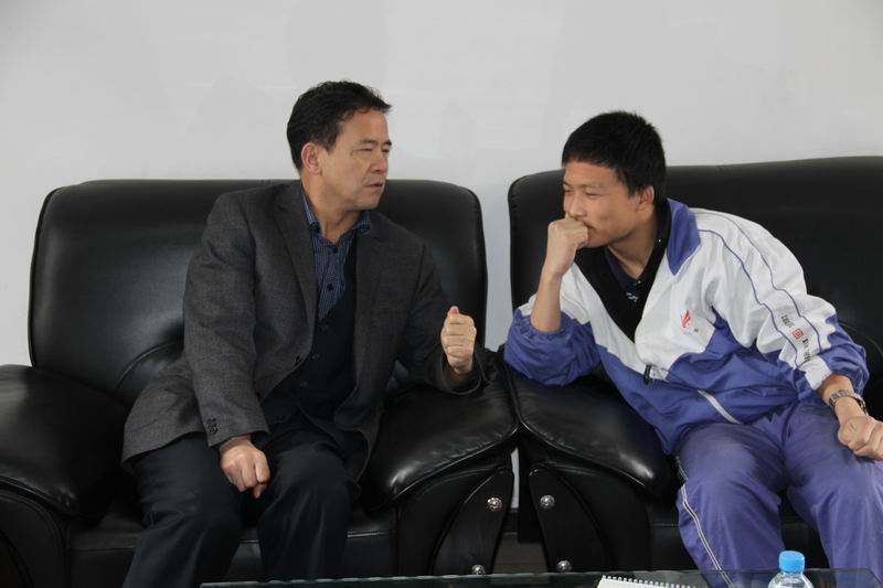 这是十八中李国柱校长与紧张拼搏的高三学生谈话的暖人心怀的一幕。