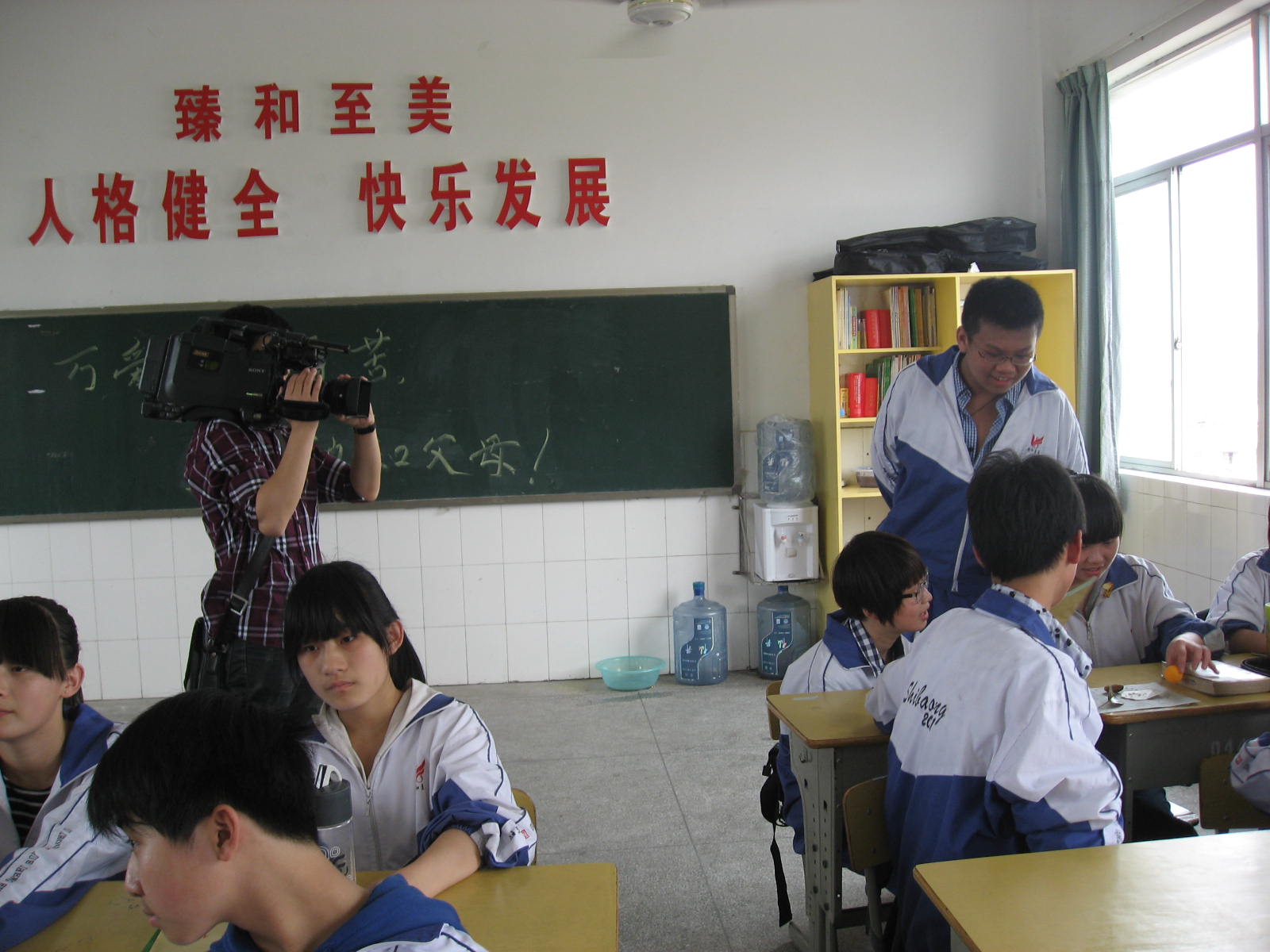株洲电视台公共民生频道记者对凌益洲的班主任贾小红老师进行采访