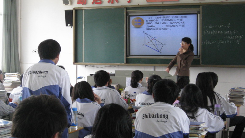 唐玲老师作为一名女教师,在数学王国里,她丝毫巾帼不让须眉,一马当先,在本周四第四节课,唐老师在226班给我们呈现了一堂感性与理性交织的数学课堂,课题为《直线与平面所成的角》。