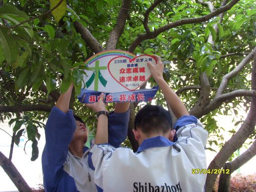 4月27日和4月28日两天,高二级部“奋发树文化”活动第二批次十一个班级顺利完成挂牌仪式活动。此次校园文化之“树木” 文化,主题是:“我奋发,我成长”。主题寓意是:学生与树一样茁壮、稳健、睿智、顽强的奋发生长。各班都给自己班级领养的树木命名,并刻有自己班级的励志语言,写上自己的理想,在树下宣誓,放飞自己的梦想。