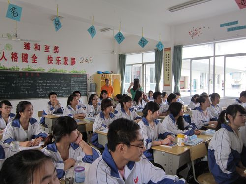 240是李果盈老师的纯文化班,一群可爱的女生和为数不多的男生。别看李老师年迈五十,工作的劲头却丝毫不逊于年轻老师,高二一十四个班主任中,每天到得最早的班主任中就有他,走廊上,时刻可见他在与学生谈心,办公室,有他下班后仍在辅导学生的身影,“六十年代生人”埋头苦干的工作特点、不为名不为利的为人之道、处事之风在他身上体现得淋漓尽致。看他们班: