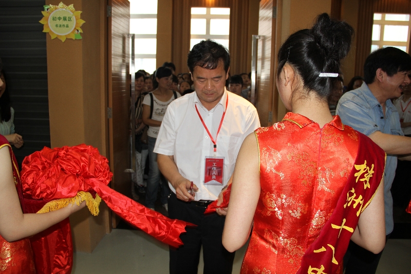 初夏时节,“2012年株洲市‘十八中杯’中小幼绘画、书法(篆刻)、摄影作品展览”在市十八中隆重开幕。参加开幕式的领导与专家有株洲市副市长张国浩、市教育局党委书记毛大训、市教育局副局长李建国、市教育局体卫艺科科长朱俊兰、副科长周蓓蓓、市财政局科长申旭明、市美协主席周伟钊、市书协主席汤树林、市教科院张庆斌、市十八中校长李国柱、书记杨电波美术教育学会会长李志华和来自城区的40多位中学校长。来自城区的市民、各个学校的师生、参加现场书画展示的学生约500余人出席了开幕式。