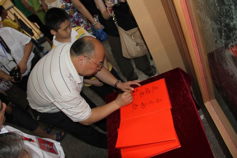 在作品展览厅,张国浩副市长兴致勃勃参观小画家们的作品,看到这些阳春白雪,张副市长一行喜形于色,欣慰之情溢于言表,在参观中高度赞扬株洲教育的发展和美术素质教育的提升,并表示株洲财政要加大投入这些有意义的活动,把这些活动做得更加有高度有内涵,把活动丰富多彩。参观之后,张副市长欣然挥笔,“因材施教,走特色之路”。对十八中给予勉励,也对株洲教育寄予厚望。