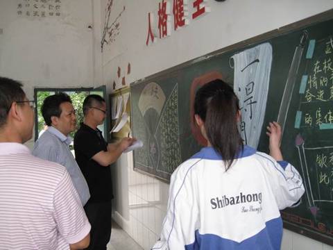 参观完最后一个班级,各位领导都流连忘返。李校长和杨书记对学生科组织的这次活动表示了充分的肯定。对高二级部整个师生的面貌给予了高度的评价。并再三交代:评比结束之后要好好的总结,要利用大会进行表彰。同时做好各方面的宣传,把教室美化作为校园文化建设的一个品牌推广出去。