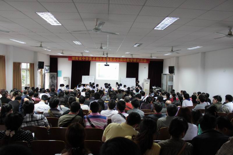 热烈而意义深远的湖南省中学美术教学竞赛暨高中模块教学研讨活动于5月16日在十八中胜利落下帷幕。此次活动是由湖南省教科院主办,株洲教科院、株洲十八中承办,在十八中进行的一次全省的第一次规模宏大的美术教研活动。活动时间为5月13日到5月16日,有14个地州市参加,参加有各地州市的美术教研员和各校美术教师精英共计200多人。