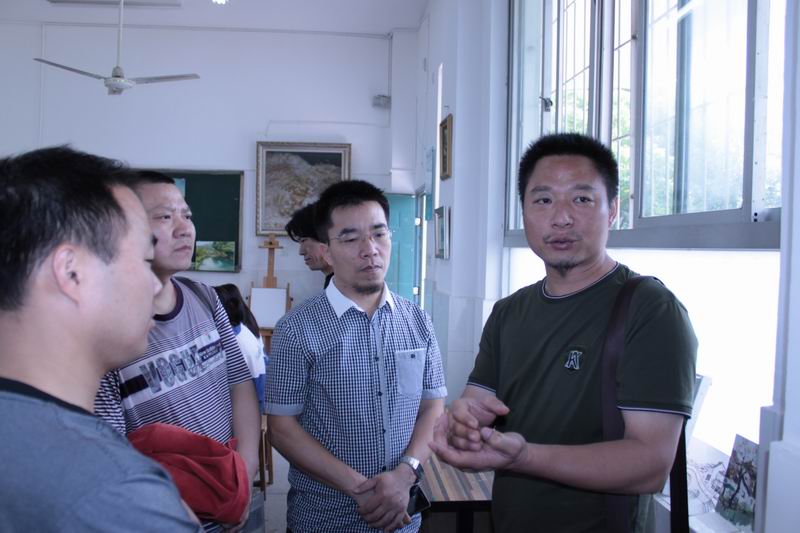 此次活动三巨头在欣然讨论(左为株洲美术教研员张庆斌,中为省教科院美术教研员朱小林,右为株洲市学科基地会长李志华)