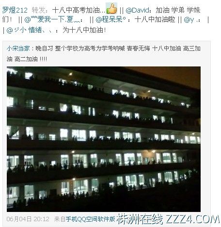 在昨天最后一节晚自习,所有高一高二的学生来自心底的自发的呐喊:高三,加油!青春无悔!胜利在望!高三学子也心存感激自发地回应:感谢学弟学妹,祝你们学考成功!十八中,我爱你!此情此景,如灯火通明的校园久久回荡!黑漆漆的夜空因此而炫亮!十八中学子!你不是一个人在战斗。