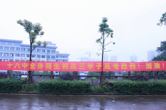 就在6月6号上午,学生出发前,学校张挂了祝福高三学子的横幅,“十八中全体师生祝高三学子高考胜利!加油!”“斗志昂扬,轻松赴考,沉着冷静细心,定能凯旋!高三加油!”。学校为高三学子举行誓师大会,大会上特意请心理专家对学生进行考前心理辅导。电视台也闻讯来采访,并把这一做法,在高考前向所有考生进行推广。民生电台于6月6号晚间播出。