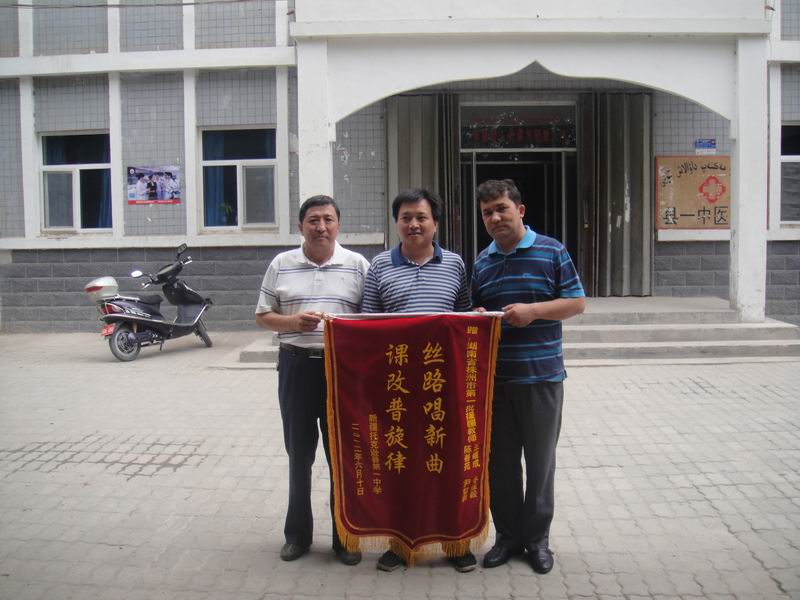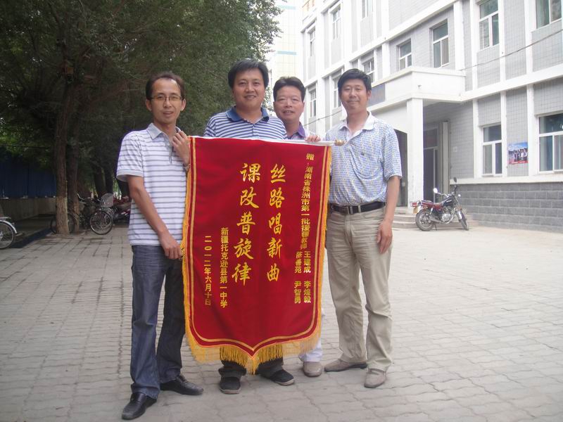 会议最后,托克逊一中赠给援疆教师一面锦旗,“丝路唱新曲, 课改谱旋律”的寄语是株托两地教育界深厚友谊的见证。