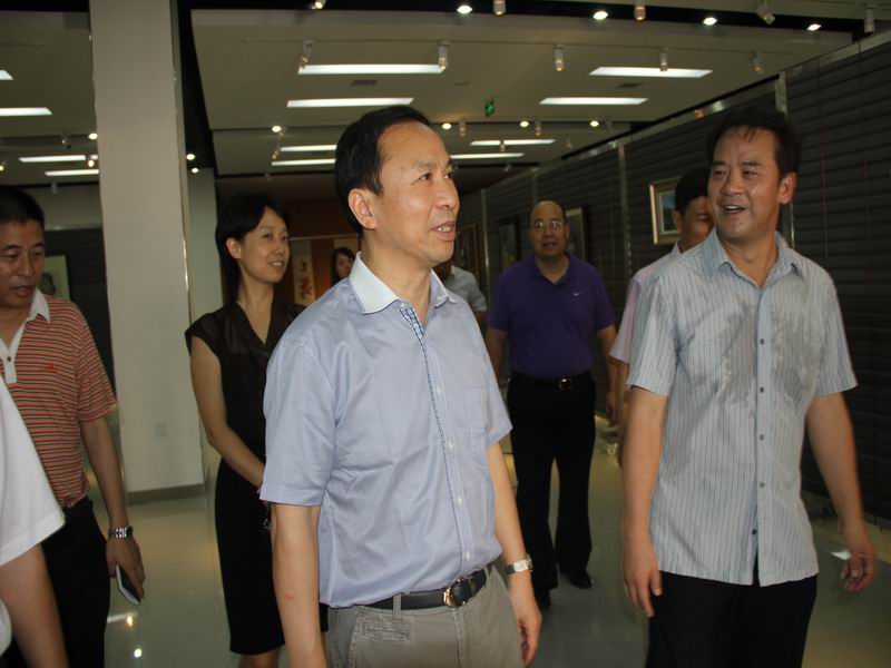 烈日炎炎,沁人心脾的清风徐徐。陈君文书记一行先后参观了学校的美术楼、美术展厅、油画模块室、陶艺模块室、书法模块室以及学校校园环境。陈君文书记对学校的美术生的培训很感兴趣。在培训现场,陈君文书记时而凝神静气的观看学生的运笔;时而含笑学生构图的线条;时而略有所思地观赏作画的起势。在展厅,陈君文书记更是目光如炬,看到众多的作品喜形于色,高兴的说:“就是要彰显师生的智慧,才是特色发展的内蕴”,并亲切询问这些作品的作者去向。在参观学校的模块室和学校校园环境时,君文书记一直不停颔首。整洁的校园尽管没有琅琅的读书声音,但绿荫里蝉歌阵阵,深树中鸟语声声,更有此时的欢歌笑语。