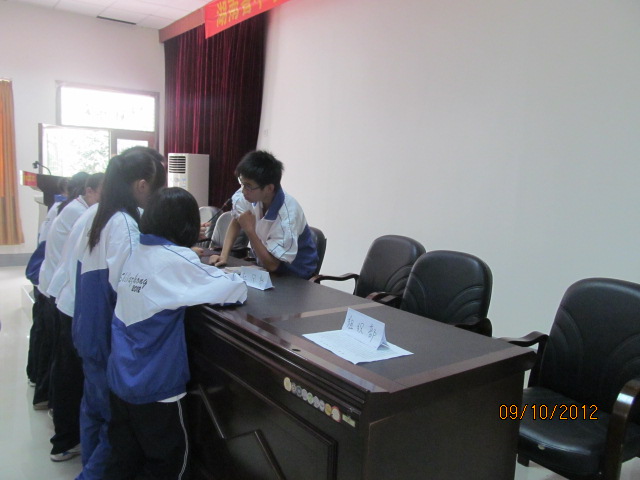 为推动我校共青团工作的发展,培养及储备学生团干,校团委面向新高一学生开展了新一轮团干招聘,团委书记潘小华,副书记程志荣及各部门部长参与了本次招聘活动,活动开展的有声有色,收效甚佳。