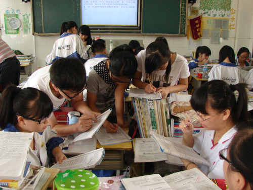 9月20日上午第二节课,像往常一样学习的高三241班的同学们发现:今天教室里听课的多了5个人。他们时而侧耳倾听,时而若有所思,时而埋头记录,时而走下座位观看同学们的自主学习和合作讨论。他们是谁?在干什么?哦,原来,这是十八中课堂督评小组理科组的课堂督评员在进行课堂督评呢。