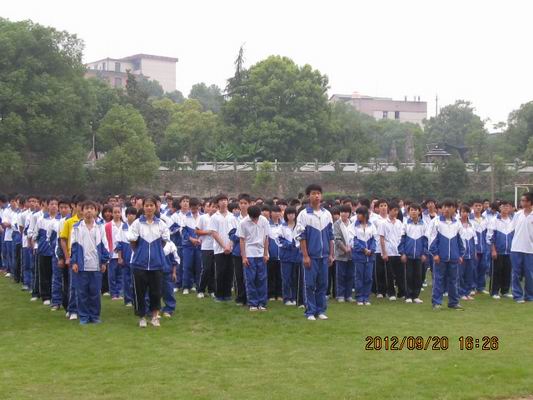 今天下午,金色的阳光普照着大地,在学校绿草如茵的足球场上,高一年级召开全年级学生大会。