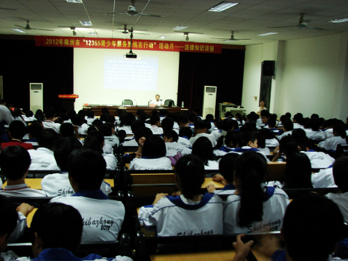 近年来,随着网络、家庭、社会等多种因素的影响,青少年违法犯罪问题逐渐凸现出来,已经引起了全社会的重视。营造关注青少年违法犯罪问题、关心青少年健康成长的良好氛围,加强青少年学生法制教育,增强遵纪守法意识显得尤为重要。团市委组织开展的这场法制教育讲座十分及时,也非常必要。活动的开展,将帮助我校青年学生掌握与自己学习、生活密切相关的法律知识,增强其自护意识和防范能力,使青年学生养成学法、知法、守法的良好习惯,为打造平安株洲、构建文明和谐株洲作出新的贡献。