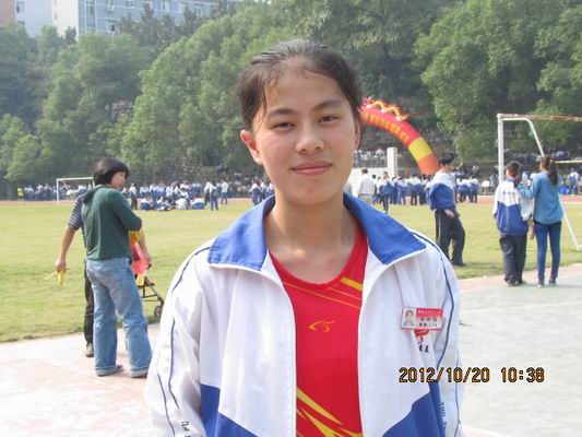 这就是我们的美女冠军,1500M高一女子冠军得主,朱彩虹同学