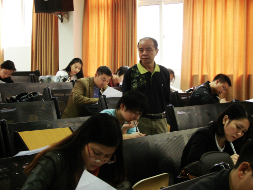 考试由教研科组织。李国柱校长、主管教学的彭仁堃副校长亲自到考场看望考生,了解考试情况。