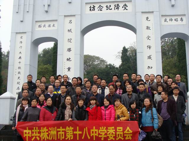 在党的十八大胜利闭幕之际,为了进一步弘扬爱国主义精神,加强党员党性修养和深化为民服务,株洲市十八中学党委组织全体党员和民主党派一行60多人于11月16日~17日,到怀化芷江参观学习。湖南人应该知道,怀化的芷江有座“受降纪念坊”,一座让日本军阀主义分子不得不低头认罪的牌坊。那是中华民族的脊梁!