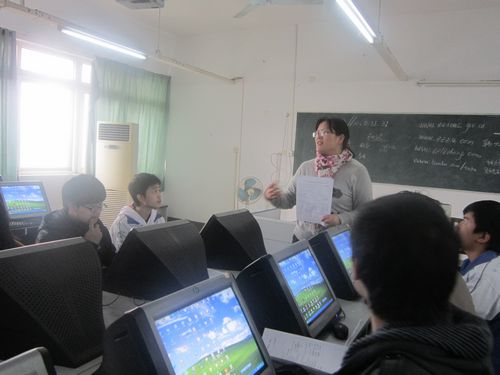 黄焱琳老师在指导理科美术班246班的学生上网