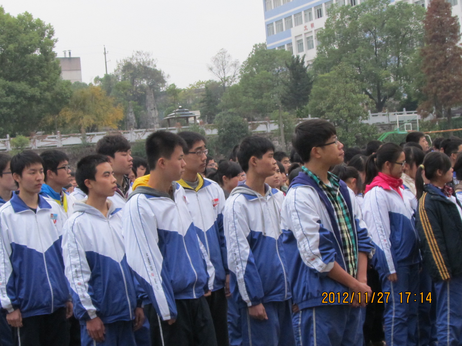 11月27号下午,天气和暖,高一全体同学整整齐齐地站在学校足球场上,参加由级部主持的期中考试总结表彰大会。