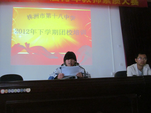 “我们是五月的花海,用青春拥抱时代…”2013年11月23日中午,株洲市十八中团委组织的团课在这充满青春活力和豪迈激情的共青团团歌声中拉开了帷幕。