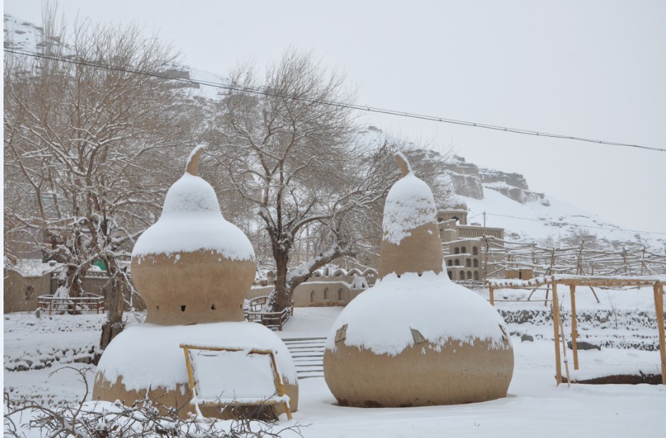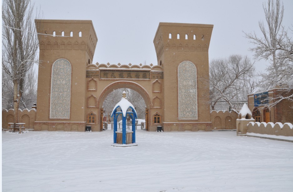 吐鲁番离乌鲁木齐市虽然只有不到二百公里,两地气候却相差很远,吐鲁番气候炎热干旱,多年测得的绝对最高气温为49.6℃,而地表温度能达到83.3℃,是名符其实的“中国热极”; 吐鲁番多年平均降水只有16毫米,夏季占一半,终年不雨或雨而未觉亦不足为奇,可以算得上是“中国干极”。 吐鲁番的冬天很暖和,很少下雪,时令已是冬至,尽管气温低到零下十度,我在这里却不用穿厚毛衣,碰巧这两天这里下了一声大雪,这种雪我在南方是司空见惯的,学生们却异常惊喜,一打听,老人说这样大的雪只在1952年冬天出现过,真是六十年一遇的大雪呀。