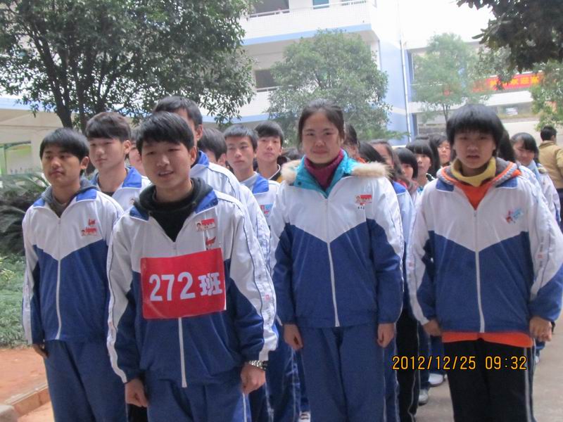 高一的学生非常重视这次比赛,他们把这当做增强和展示班级集体荣誉感和凝聚力的一次绝好的机会。他们着装整齐、精神抖擞,精心设计班级口号,比如269班的口号是:冲锋在先,文武双全,269班,勇往直前。