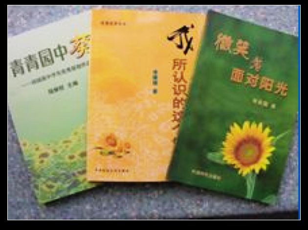 语文组教师还组织全体学生开展“咏葵”原创诗文大赛,举行原创诗文朗诵会,将同学们的优秀习作结集出版,汇编成《金葵礼赞》、《青青园中葵》等书。