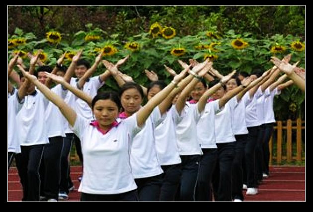 走进田园,每一个参观者都可随时感受到校园中积极向上的朝气和活力,昂扬进取的精神和面貌。校报上、书刊上、板报上、校徽上,“金色向日葵”随处可见,教室里、食堂里、宿舍里、操场上,朵朵“金葵花”扑面而来,让我们仿佛置身于金色的海洋,徜徉于阳光的世界。