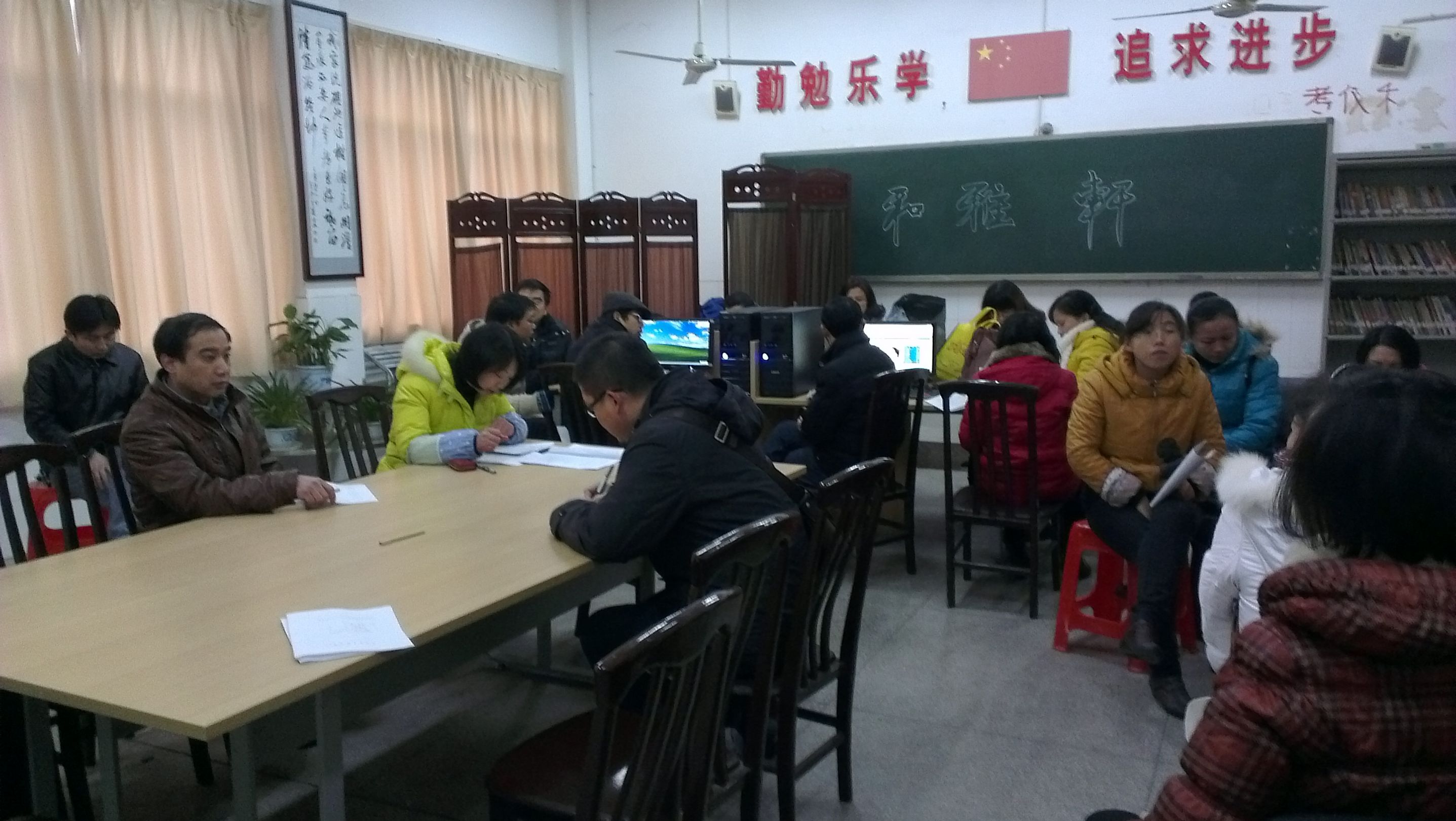 今天下午第八节课,高二级部全体老师聚集一堂,在级部会议室成功召开了级部年终述职大会,会议由级部长李红红主持,李部长首先宣布了评优评先各项规则,高二级部实行考核打分制;其次是进行了动员,不搞轮流坐庄,把真正优秀的人员评选出来,号召所有的成员都要口头述职,所有的成员都有评选资格;然后是投票统票。最后李部长总结了前段的工作,着重指出了不足,要求高二级部全体老师克服困难,把各项工作做好。